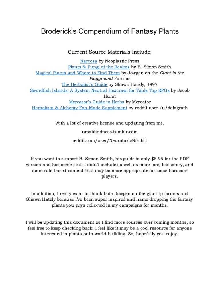 Fantasy Plant Compendium V1 5 Pdf Trees Leaf